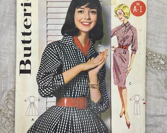 1950s Classic Shirt Dress Vogue 7689 Vintage Sewing Pattern Bust 34