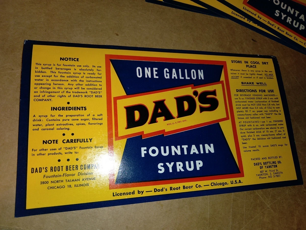 Vintage Dads 1 Gallon Fountain Syrup Label Root Beer Bottle Soda Pop Yankton Sd Ebay